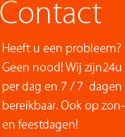 Daarnaast zijn wij steeds, in tegenstelling tot vele andere bedrijven, 24 uur per dag, 7 dagen op 7, bereikbaar (in geval van storingen). Ook op zaterdag, zondag en feestdagen.